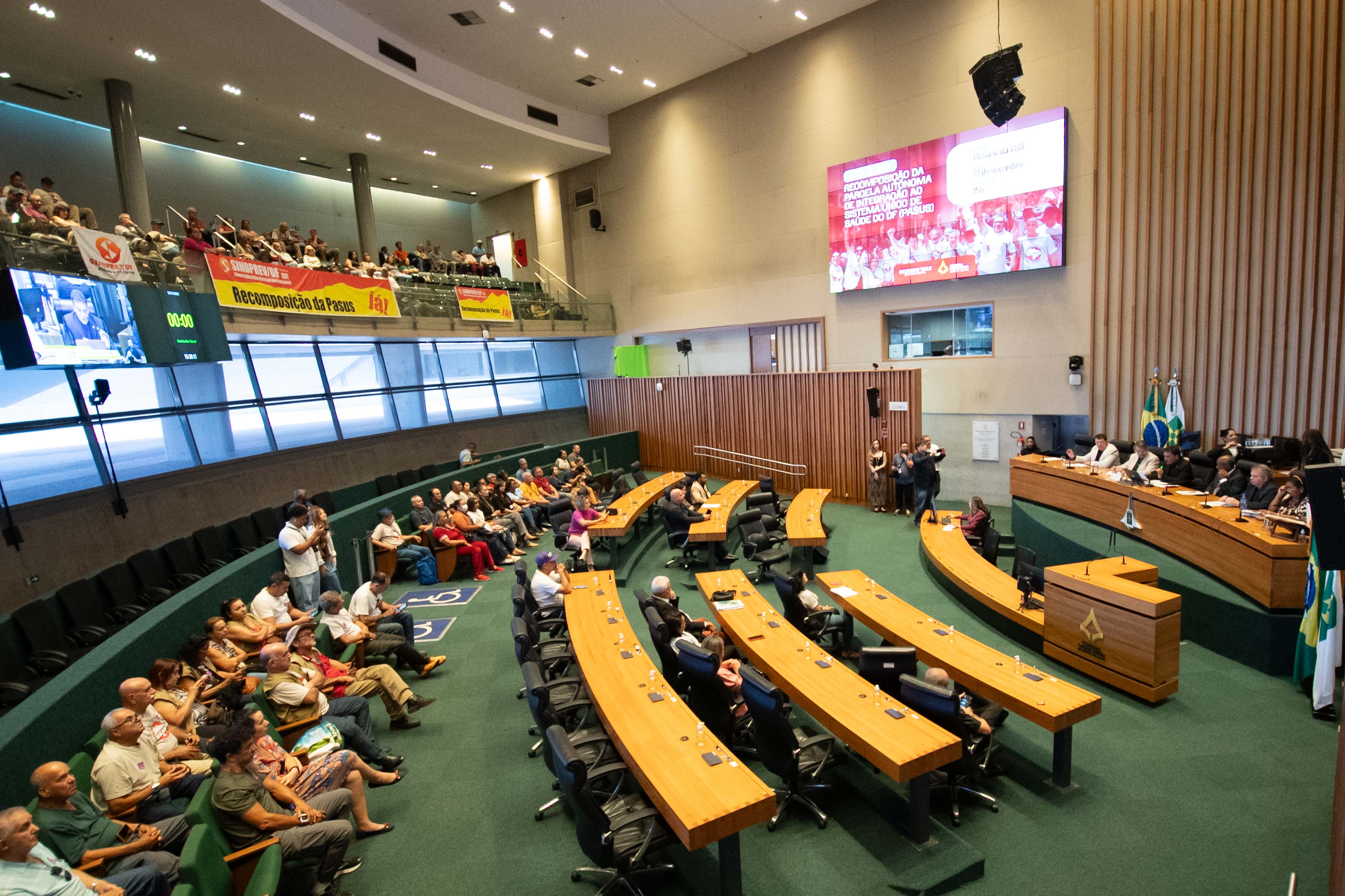 A sessão ordinária da Câmara Legislativa do Distrito Federal desta quinta-feira foi transformada em comissão geral para debater sobre a recomposição de uma gratificação paga a servidores federais cedidos à secretaria de Saúde do GDF, conhecida como Parcela Autônoma de Integração ao Sistema Único de Saúde do DF (PaSUS). O debate foi sugerido pelo deputado Ricardo Vale (PT), vice-presidente da CLDF.