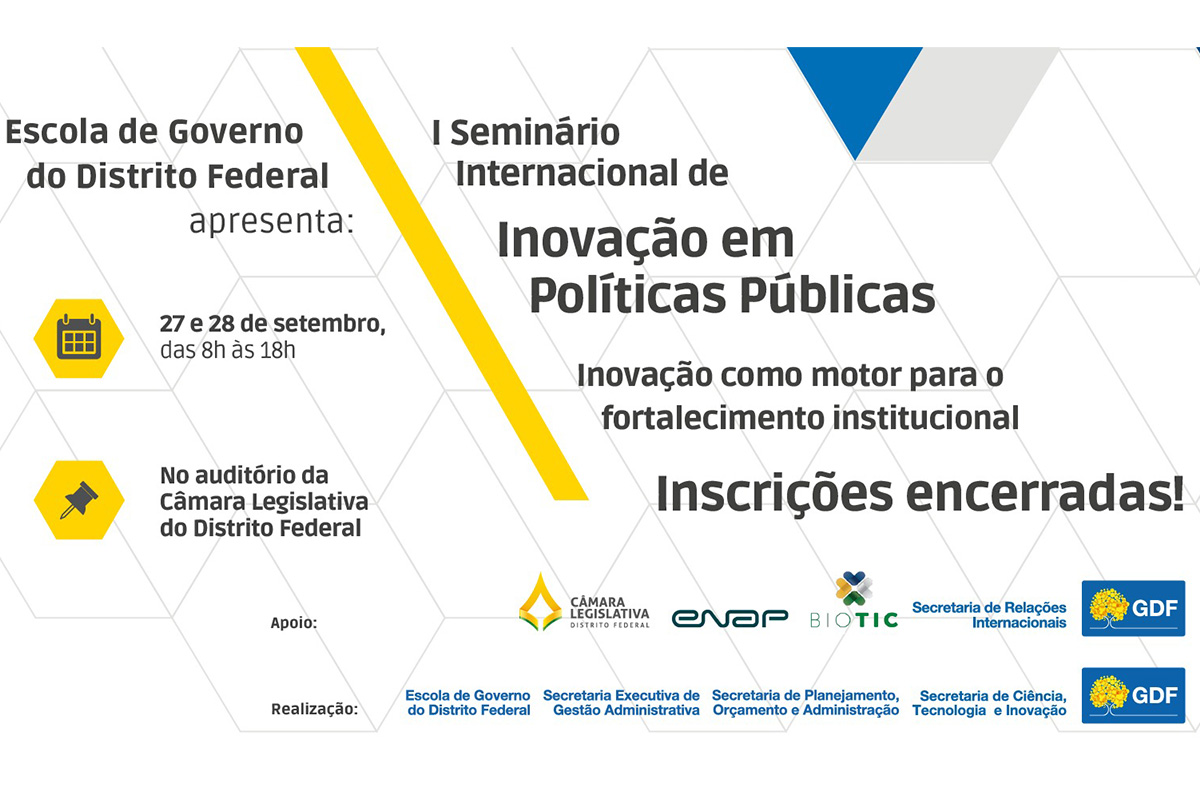 Estimular os servidores públicos do DF a realizarem inovações de impacto que promovam a eficiência na gestão pública é a motivação da Escola de Governo (Egov) da Secretaria de Planejamento, Orçamento e Administração (Seplad) para idealizar o I Seminário Internacional de Inovação de Políticas Públicas, que tem como tema central “Inovação como motor para o fortalecimento institucional”. O evento será nos dias 27 e 28 deste mês, no auditório da Câmara Legislativa do DF, com a parceria da Secretaria de Ciência, Tecnologia e Inovação (Secti).