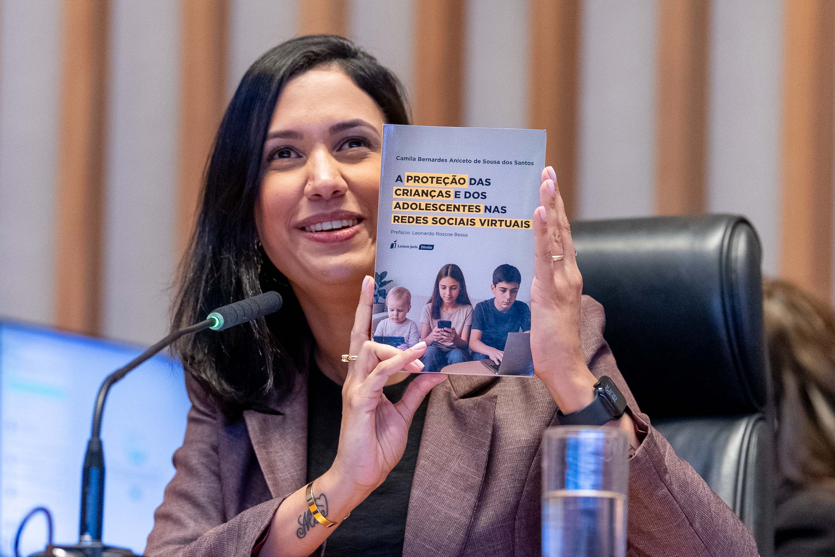 A doutoranda e autora do livro “A proteção das crianças e dos adolescentes nas redes sociais virtuais”, Camila Aniceto, reforçou o papel das escolas: “Elas precisam discutir, com linguagem adequada para a idade, cidadania digital, como proteger dados pessoais, cyberbullying”. Além disso, a estudiosa defendeu a importância de incluir no debate a questão da inteligência artificial: “Se a IA engana os adultos, imagina as crianças”.