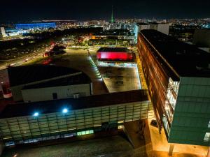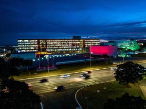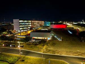 Fachada noturna iluminada