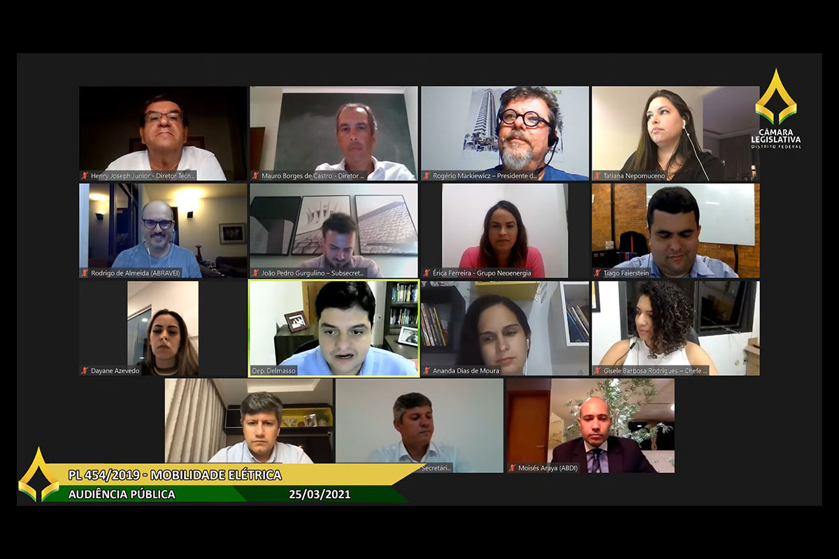 - Audiência pública - PL 454.2019 - Mobilidade elétrica. Dep. Delmasso, Henry Joseph Junior, Mauro Borges de Castro, Rogério Markiewicz, Tatiana Nepomuceno, Rodrigo de Almeida, João Pedro Gurgulino, Érica Ferreira, Tiago Faierstein, Dayane Azevedo, Ananda Dias de Moura, Gisele Barbosa Rodrigues.