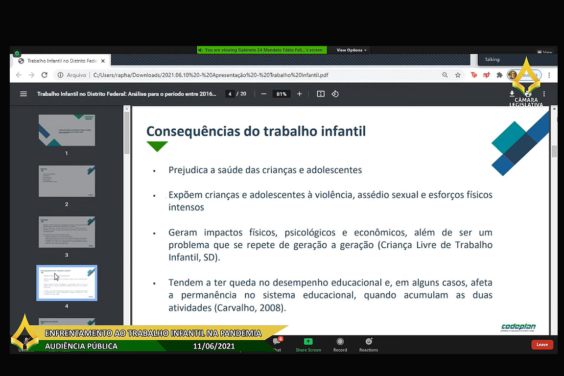 - Audiência Pública Remota- Enfrentamento ao trabalho infantil na pandemia