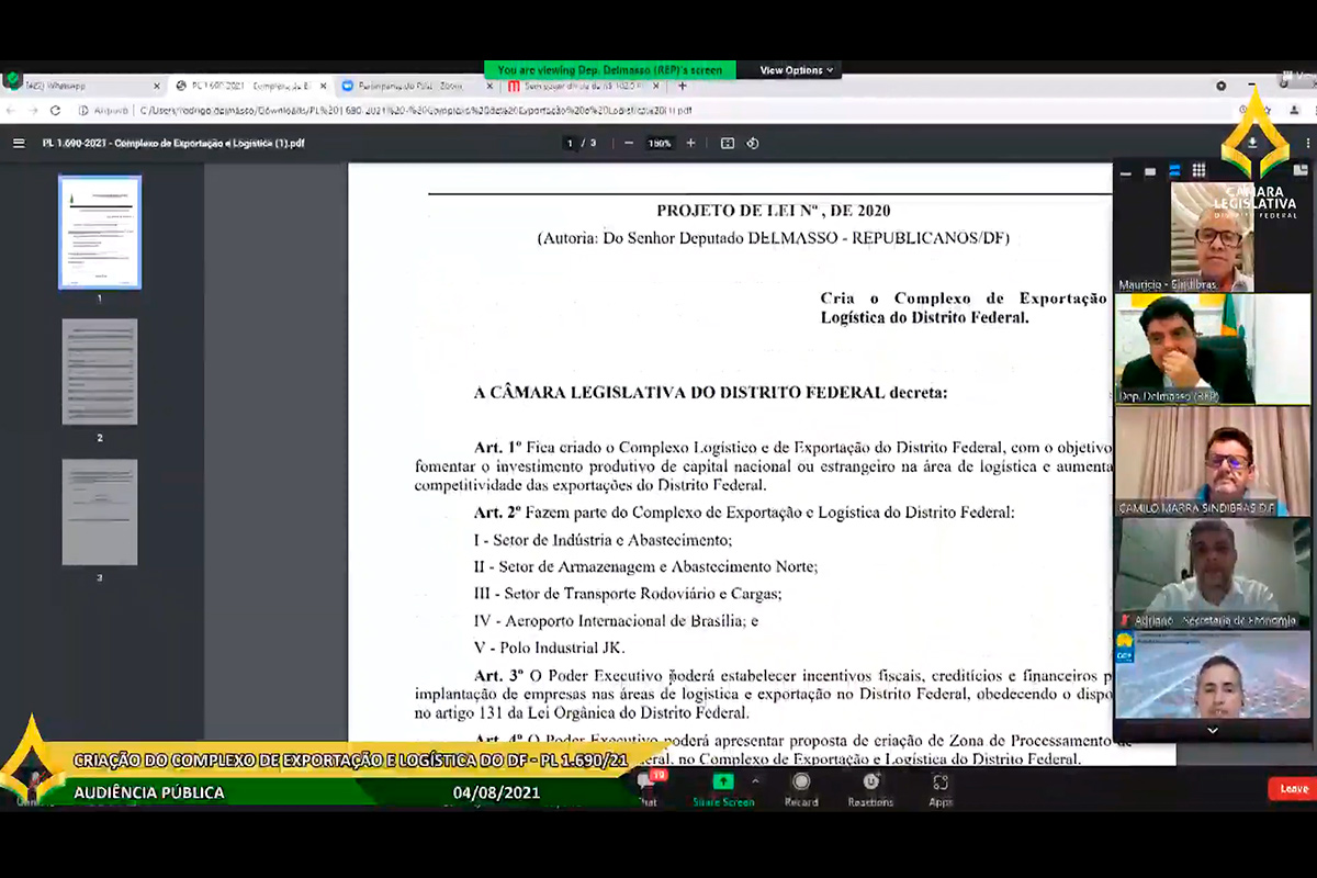 - AP Criação do Complexo de Exportação e Logística do DF - PL 1.690-21
