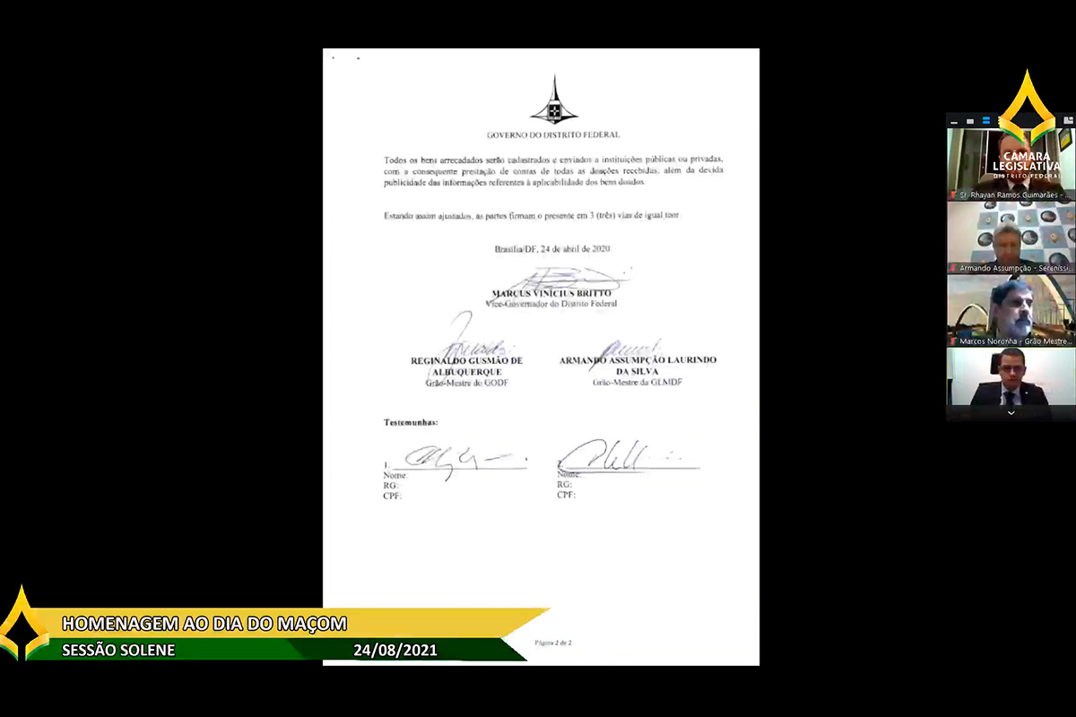 - SESSÃO SOLENE REMOTA Homenagem ao Dia do Maçom