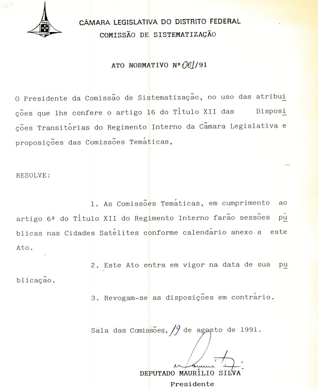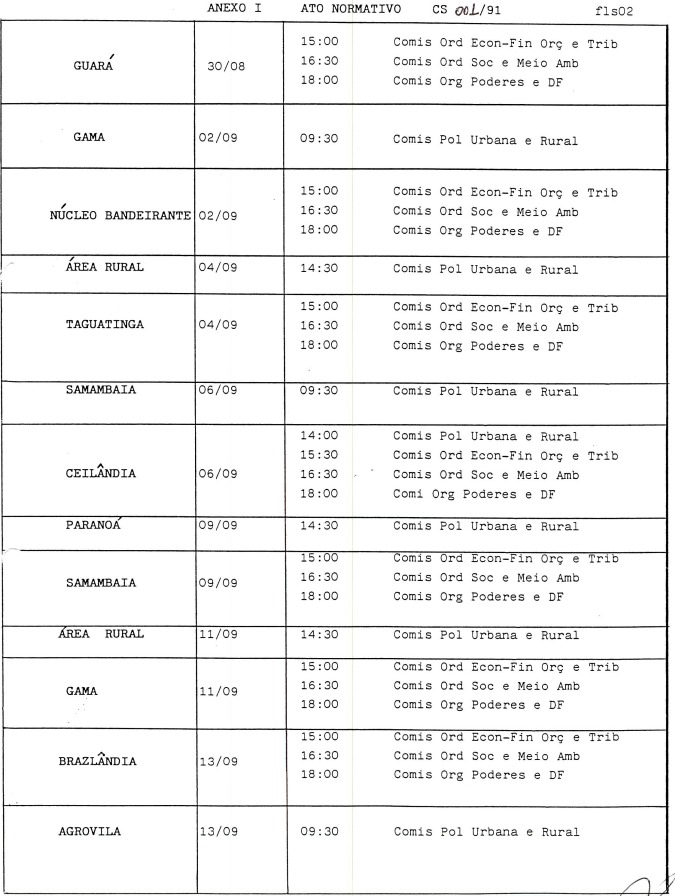 No Ato Normativo nº 001/91, a Comissão de Sistematização definiu o primeiro calendário das sessões públicas.