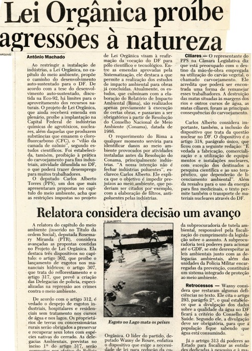 As questões ambientais e sociais também foram pautadas durante o processo de elaboração da Lei Orgânica, como demonstrado nas reportagens a seguir.