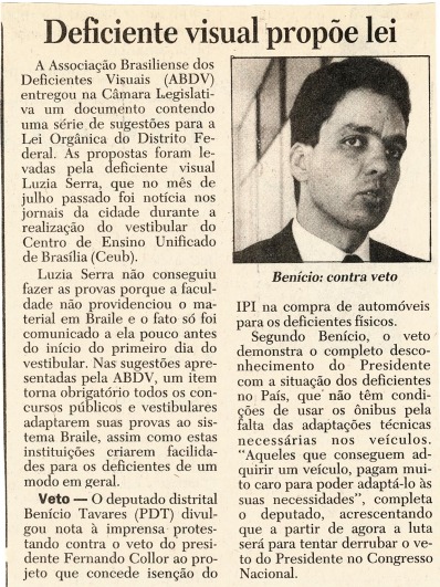 Notícia do jornal Correio Braziliense, 21/09/1992
