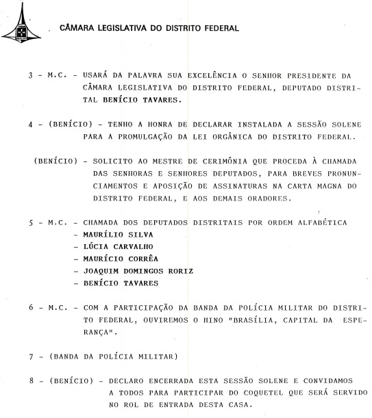 Programação do evento de promulgação da Lei Orgânica do DF