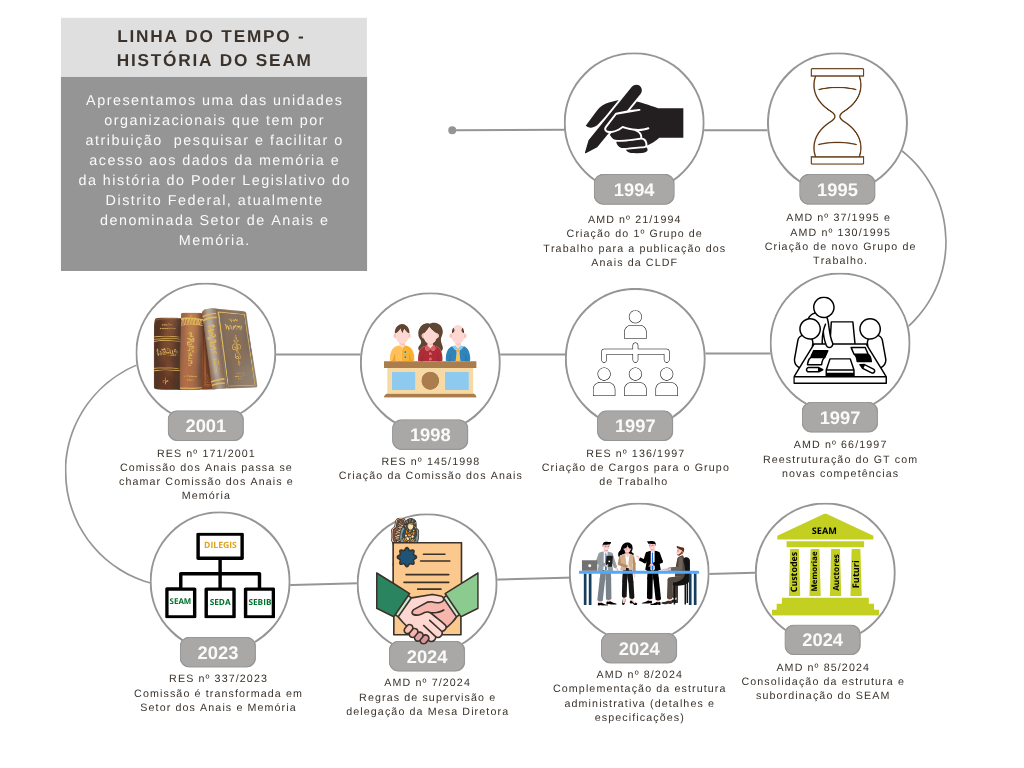 A Resolução nº 337/2023 transformou a Comissão dos Anais e Memória em Setor dos Anais e Memória, consolidando sua posição como unidade administrativa permanente da CLDF, que deve trabalhar em parceria estreita com as unidades responsáveis pelo Arquivo e pela Biblioteca. Os Atos da Mesa Diretora nº 7/2024 e nº 85/2024 complementaram essa estrutura, reforçando a vinculação à Diretoria Legislativa e à supervisão da Mesa Diretora.